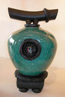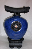 Rich Raku Gloss Black, 22 carat Gold leaf highlighted seal,
